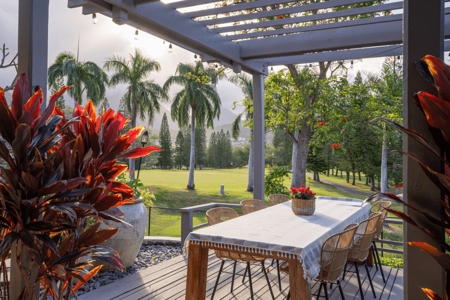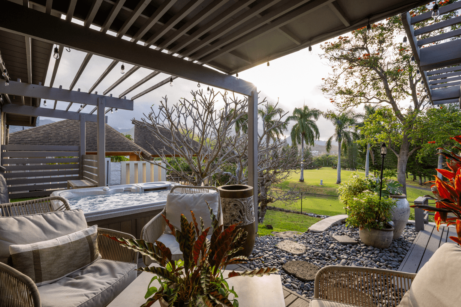 This chic and stylish, private, stand-alone home is situated on the edge of beautiful Mid-Pacific Country Club. Enjoy the golf